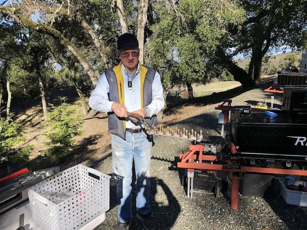 Brandon (kerosene), Ed (propane), and Bill (coal) had their steamers out. The air was cool enough to showcase our steam operation. A couple of speeders and the club engine were ferrying guests around as the temperature dropped into the 40s.