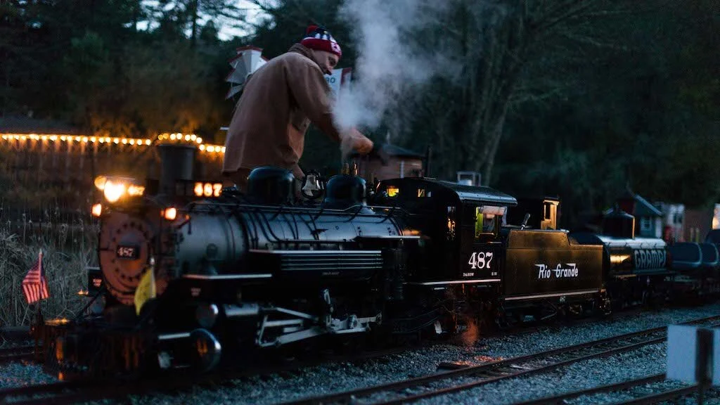 Bruce brought his vision of a Polar Express night run to life. We were fretting about the weather which turned out to be perfect. Bruce brought his usual energy to the planning and setup which saw lights installed on our major structures and the right-of-way primped to perfection.