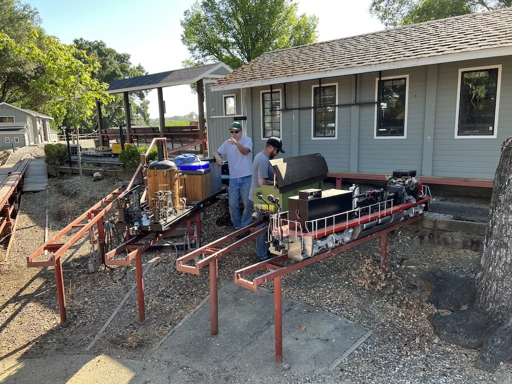 There is a leaky couple of fittings on the brake steam piping and a leaky tee fitting on the throttle that will be fixed on the next outing. Minor leaks but annoying. About an hour of fix time at the steam bays.