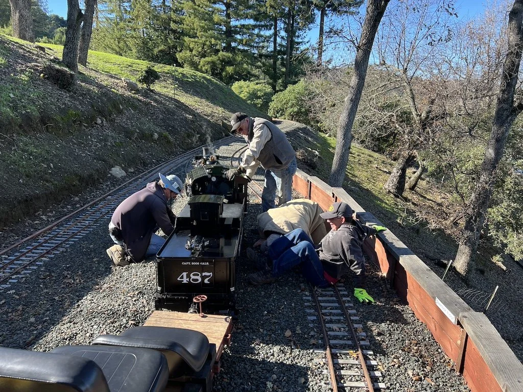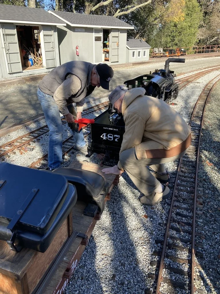 A perfect day to run trains, entertain grandchildren, wow train enthusiasts, practice re-railing skills, and do a drop of real work.