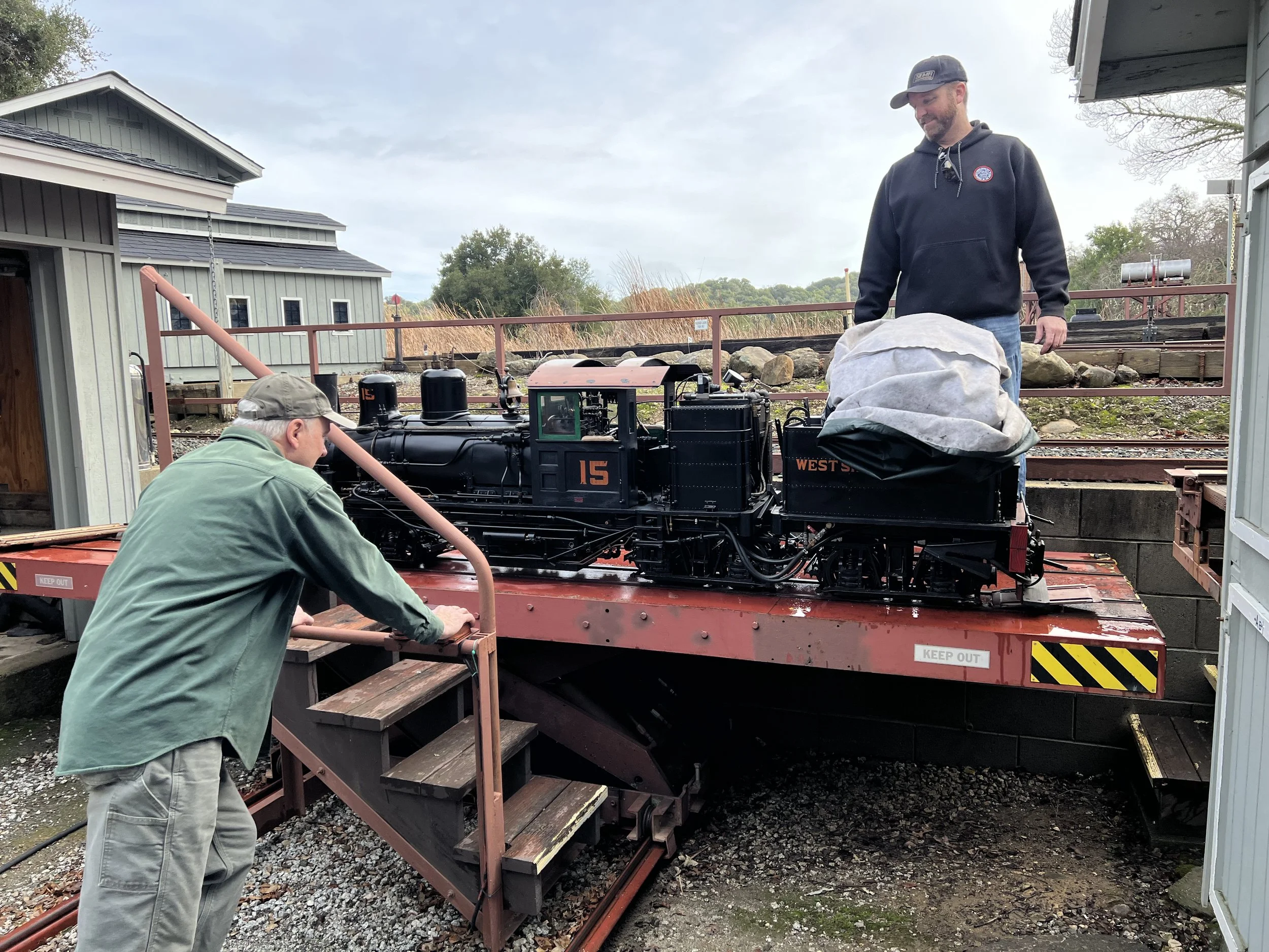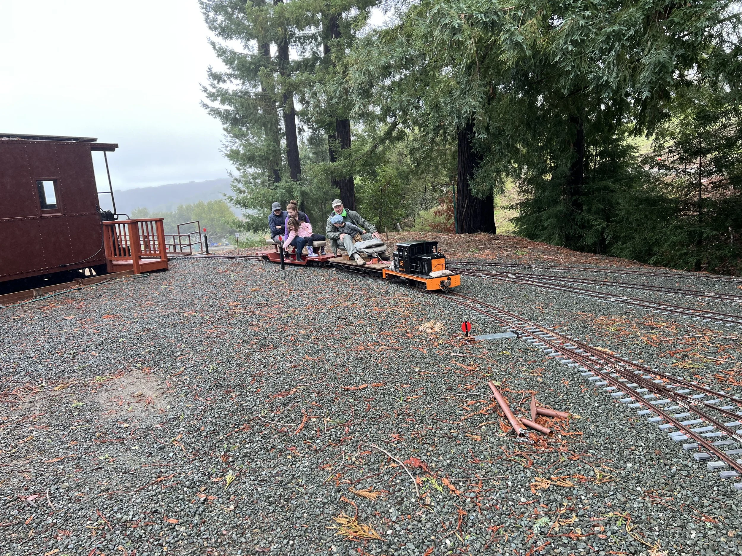 ‘Twas a rainy day. Not quite the big pot luck lunch that Bruce had carefully planned. We still were able to host guests and show off the PV&A RR.