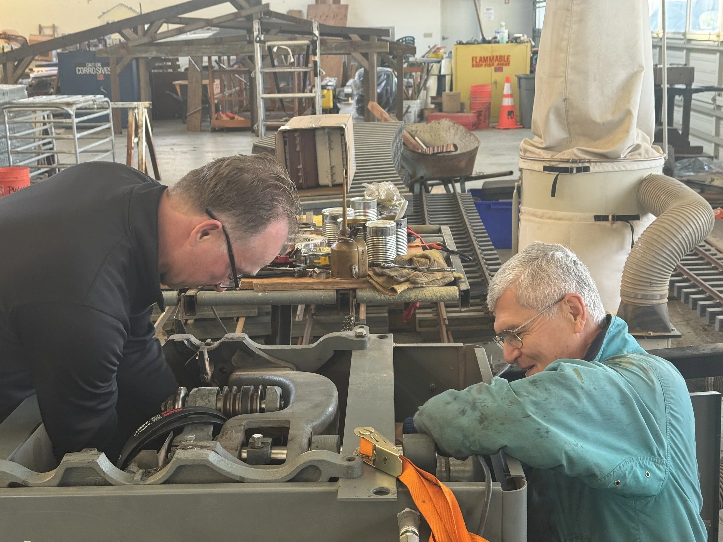 Bruce continues to work on the club’s blue engine with questions from Jerry