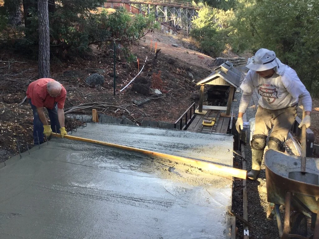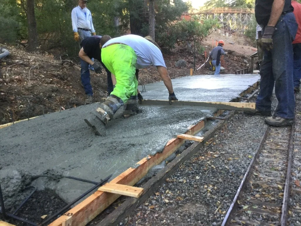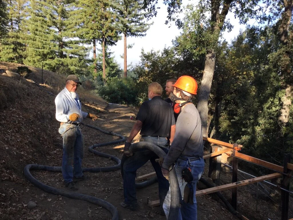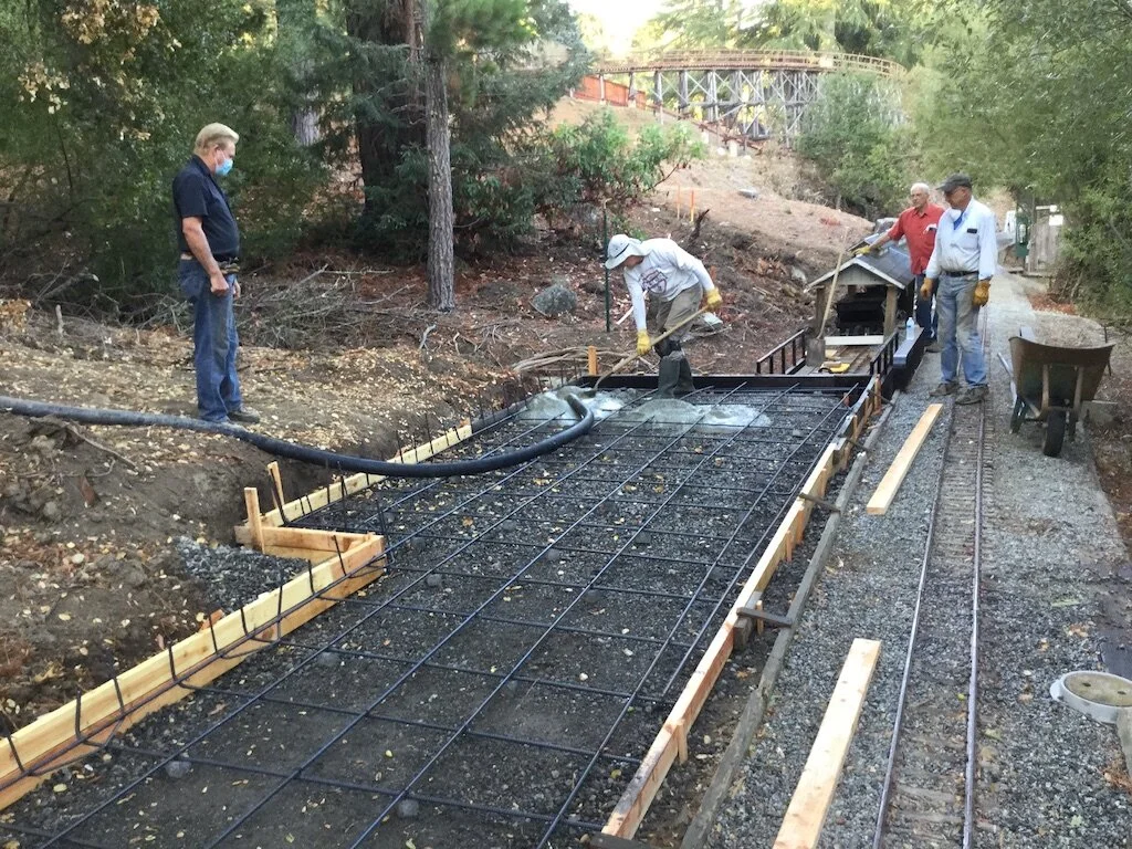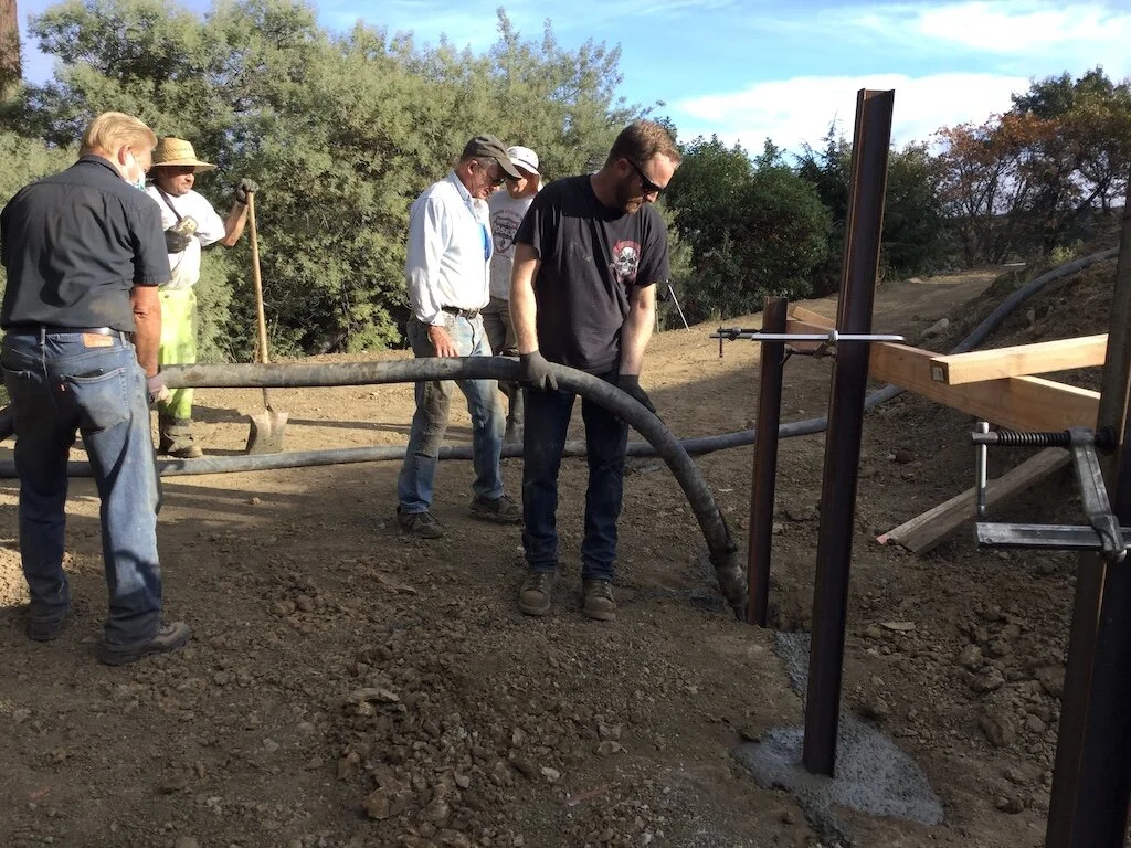 Teams showed up on extra work days to get the forms in place and then strip the forms soon after the cement was poured. The 5.5 yard (total) pours were almost anti-climatic due to great planning and prep work. Per Bruce, 5.5 yards = ~330 60# sacks.
