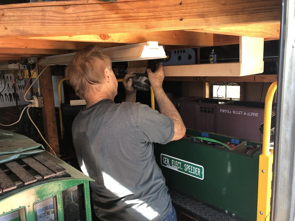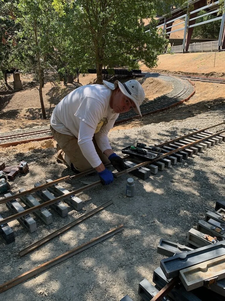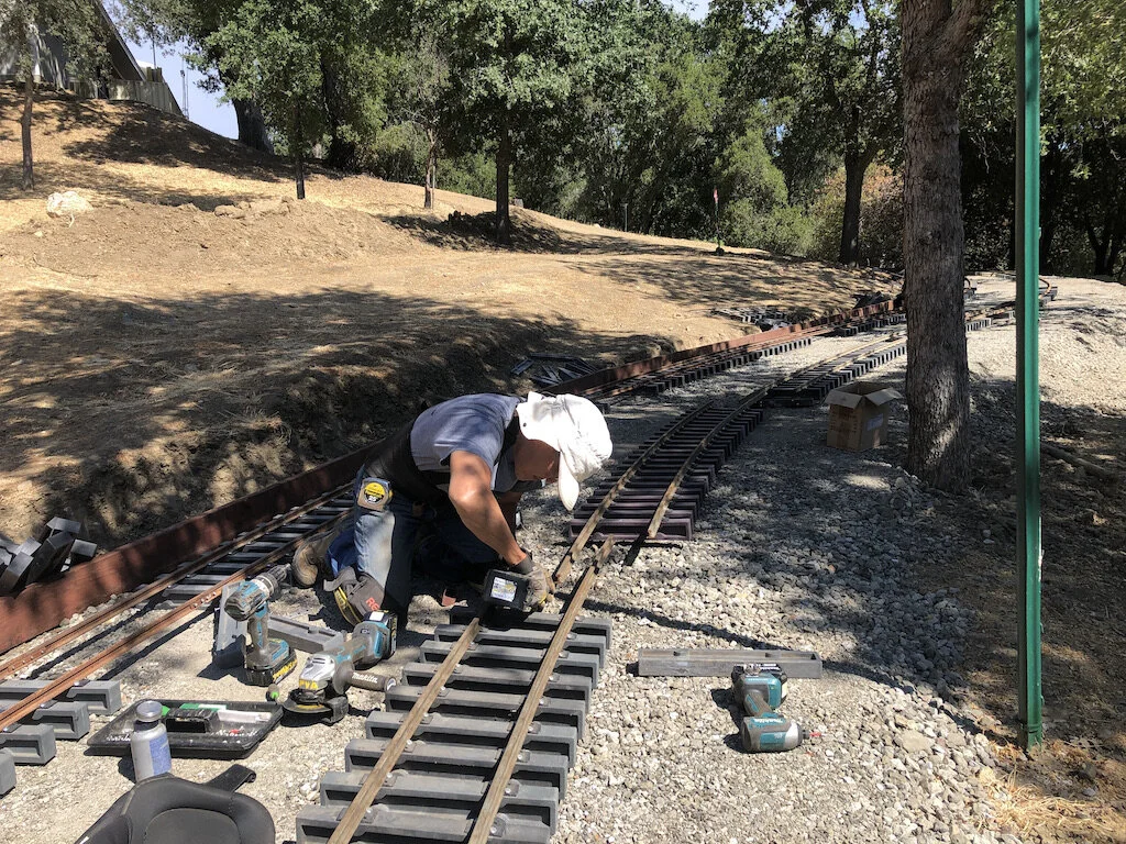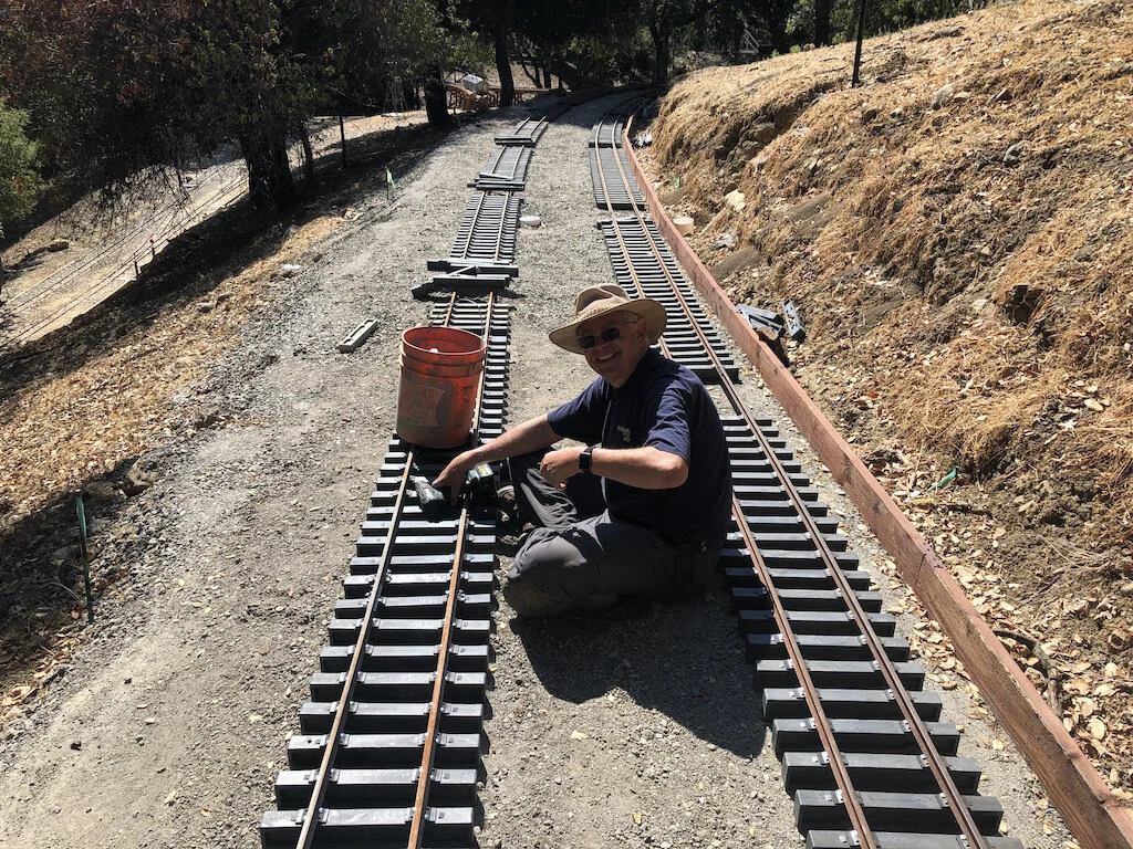 Bruce connecting the last panel between the Lumber Camp Loop and the Caboose Loop