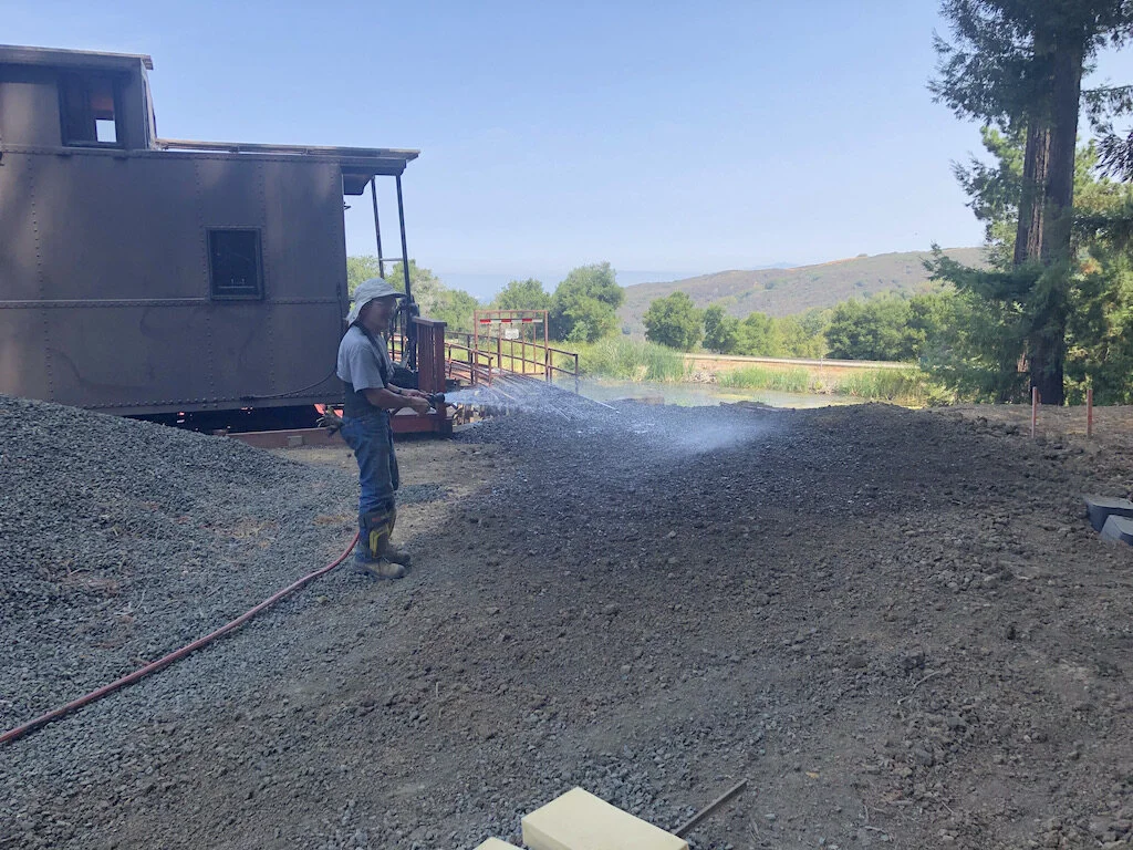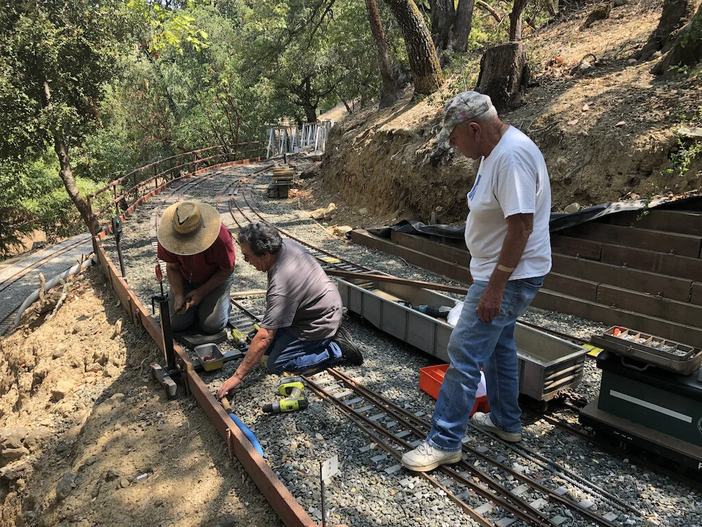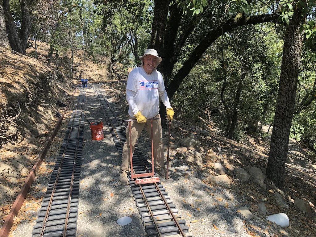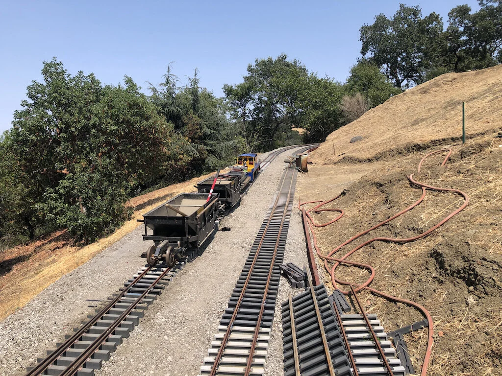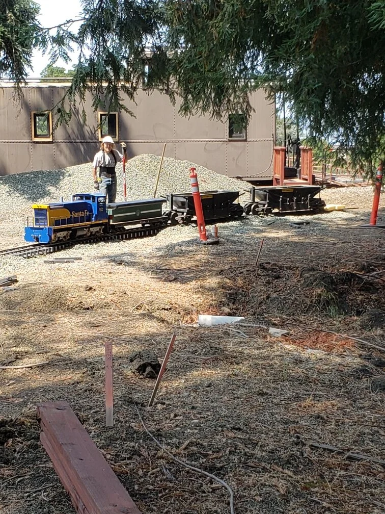 The Caboose route is now usable for ballasting operations. A switch stand was installed to access the new tracks, Bruce completed some basic leveling while the final missing ties were installed.