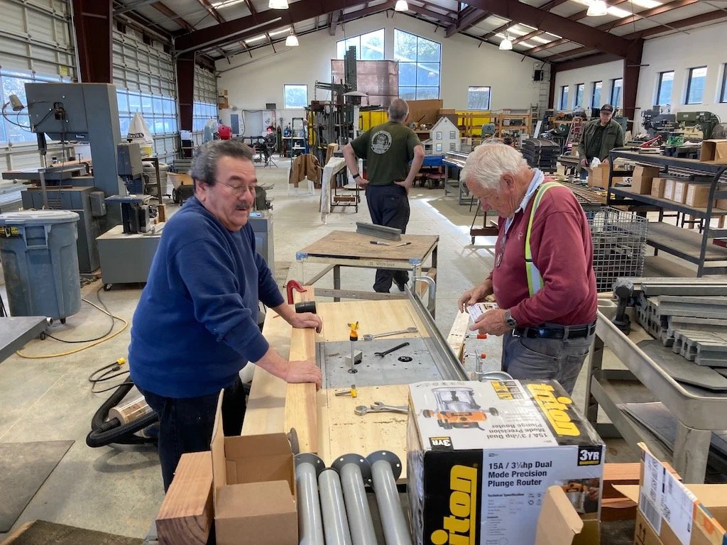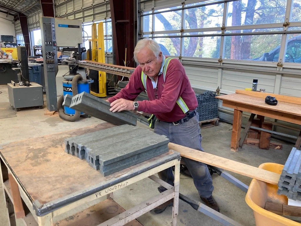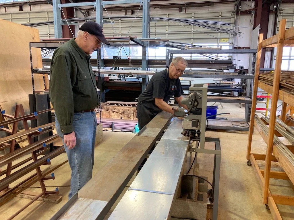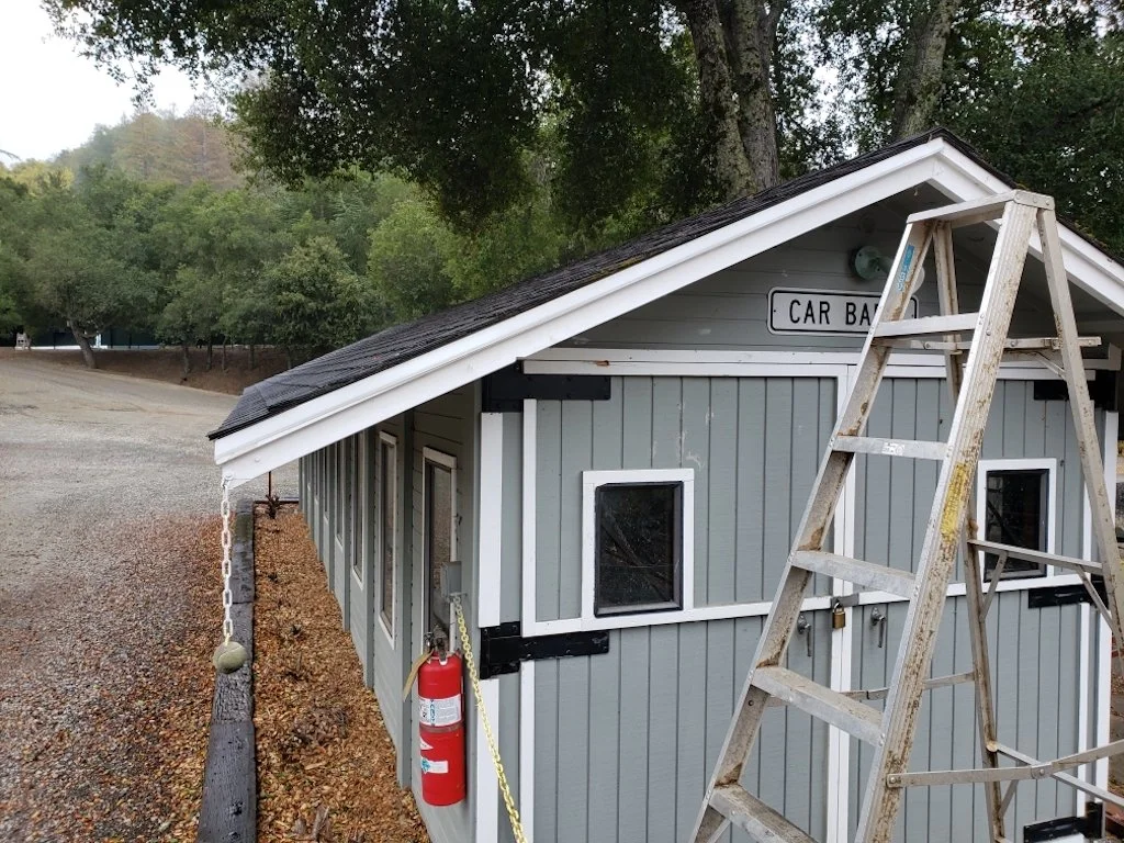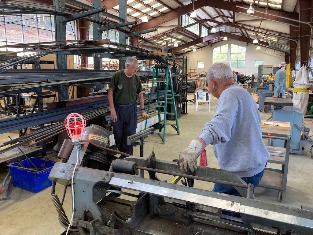 Bruce follows Kevin to sweep the leaves off in prep for the big meet