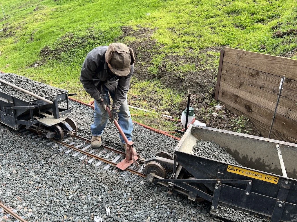 Kevin continues to groom the ballast that settled after our big rains last month.