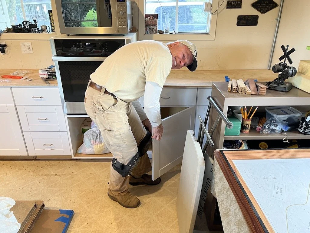 Mike, Bruce, and Randy continue to make good progress with the kitchen. Dee and Bob are anxious to reorganize the chaos once they are done.
