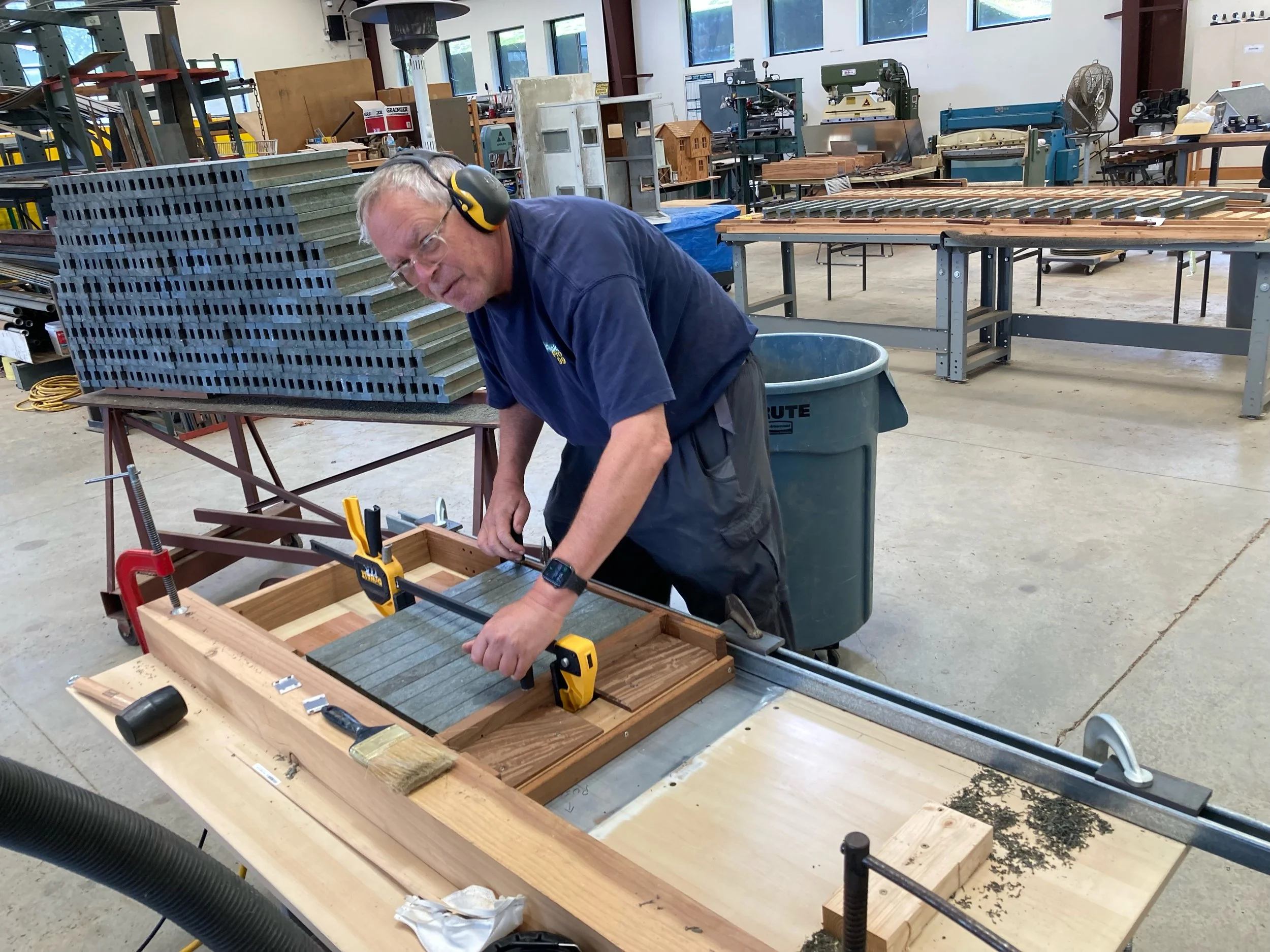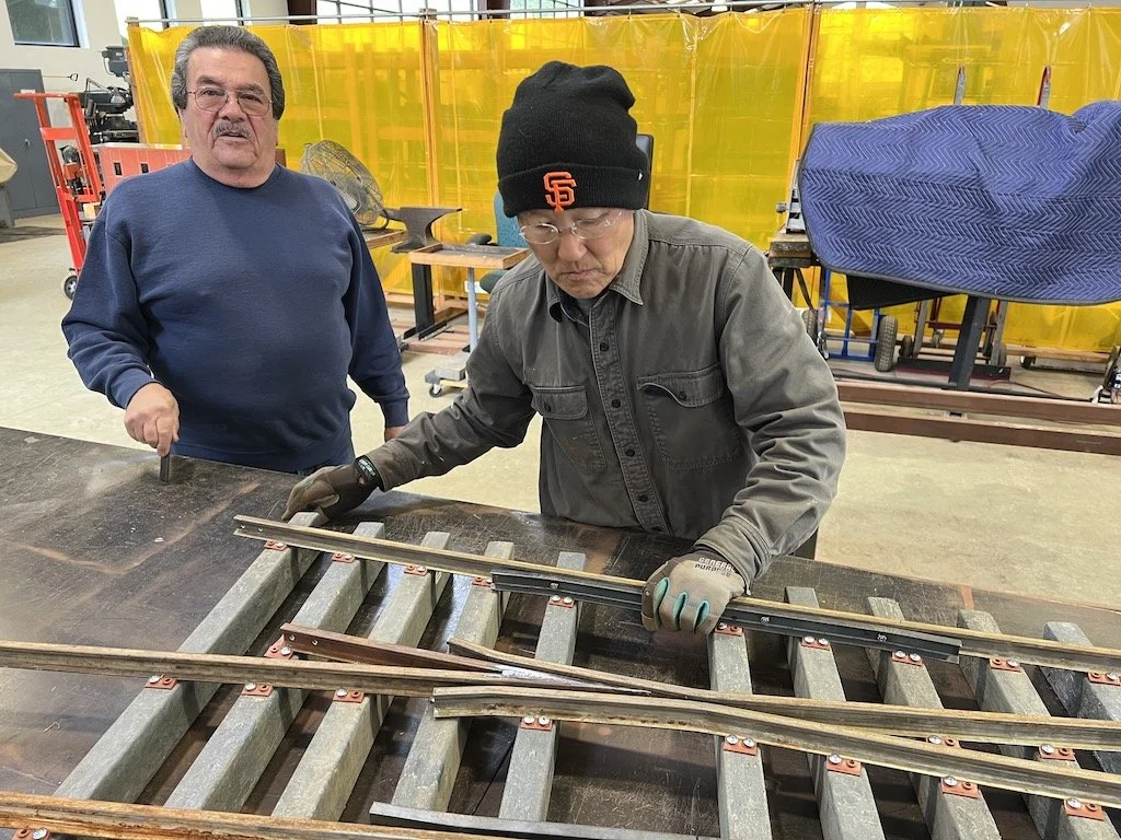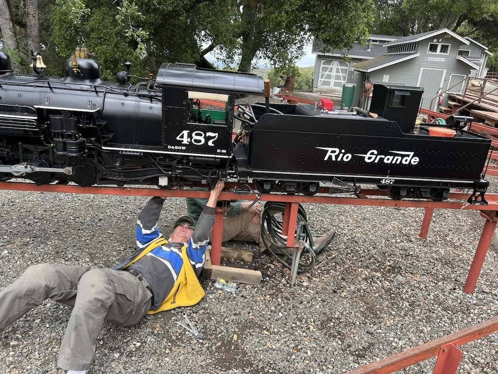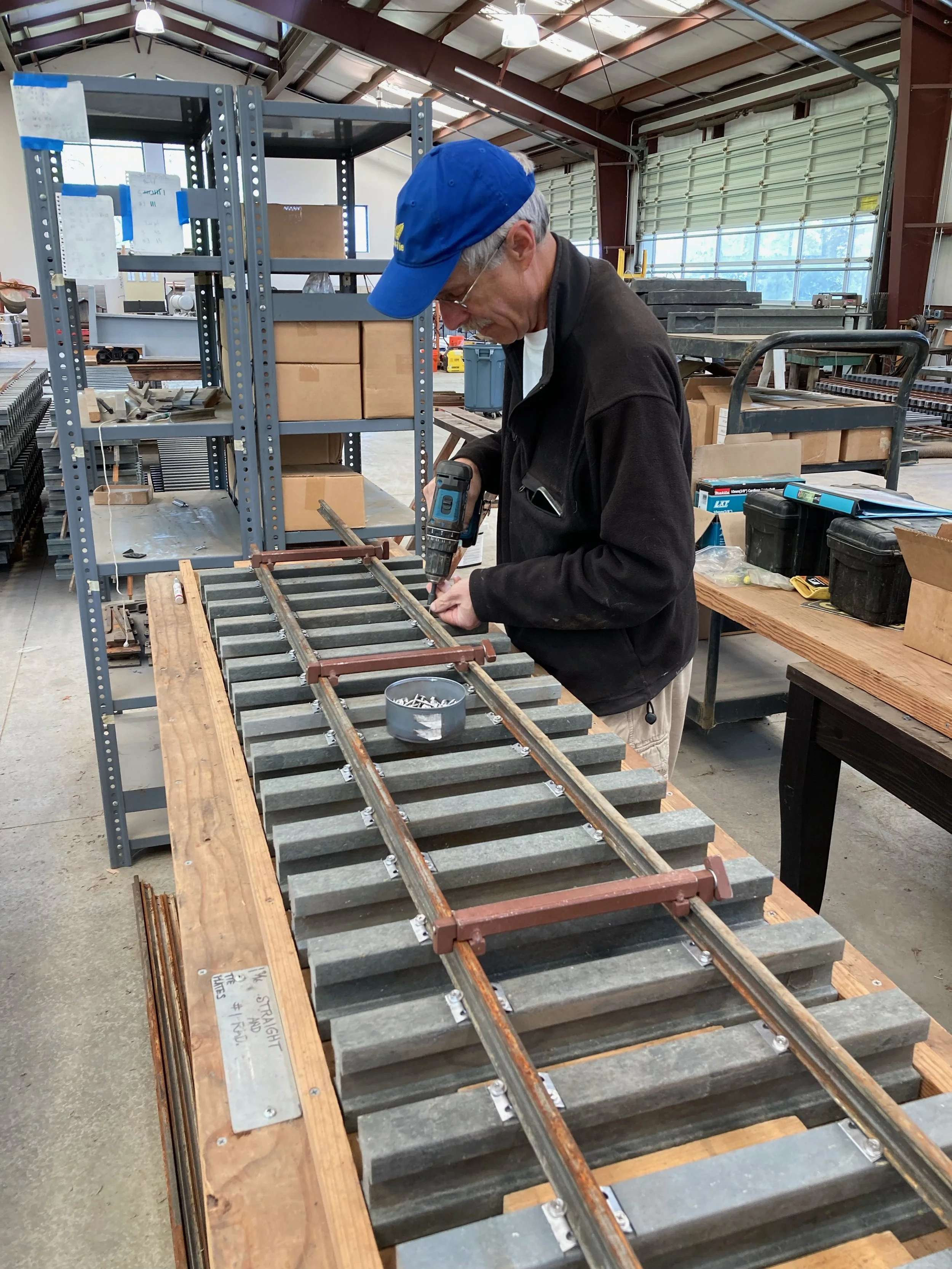 Off and on rain kept most folks working inside. There is a big push to get switches, switch stands, and track panels ready for installation in our yards and sidings.