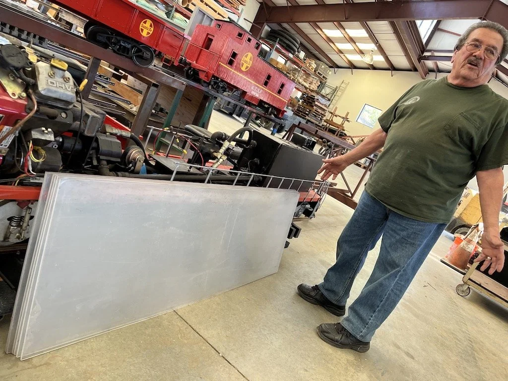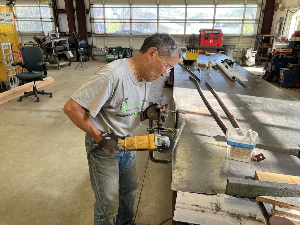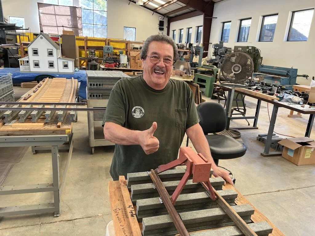 At our monthly meeting Bill explained the great complexity involved with splicing in the Gritty Gravel siding, new bridge, and getting the track to gently climb into the barn.