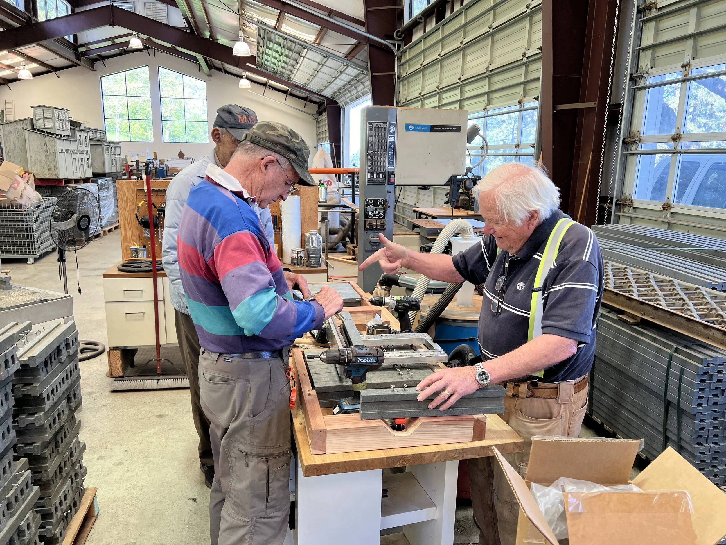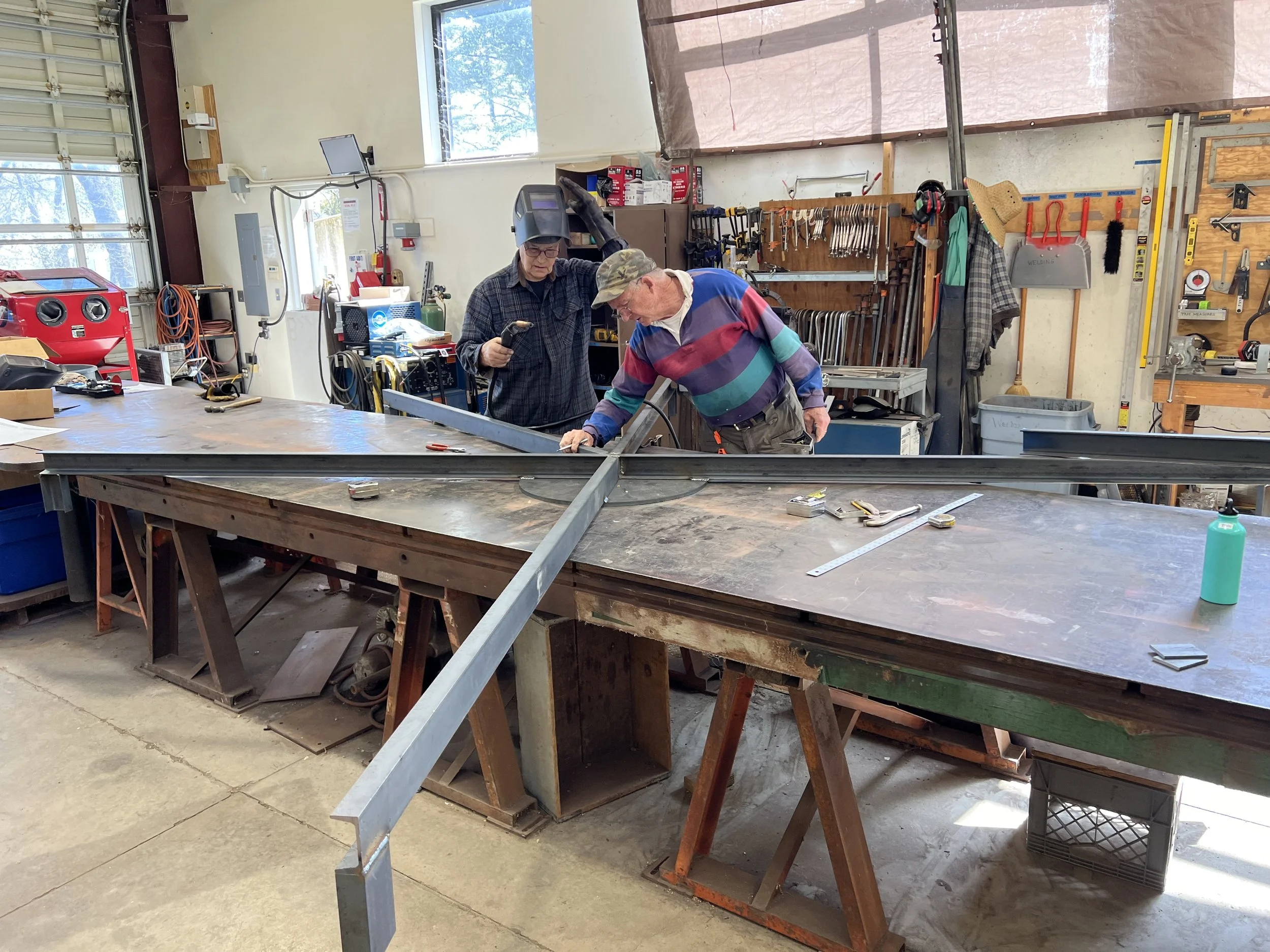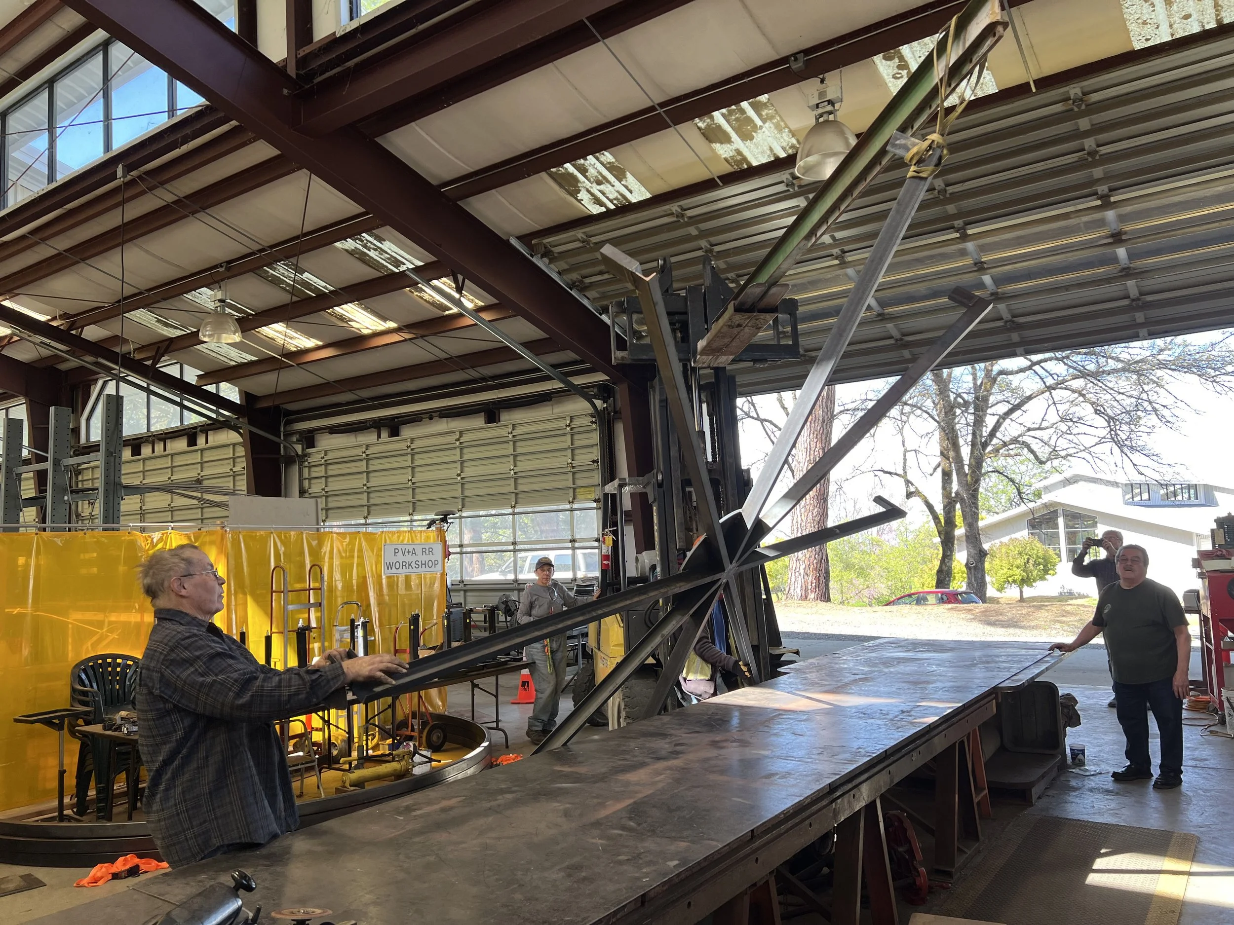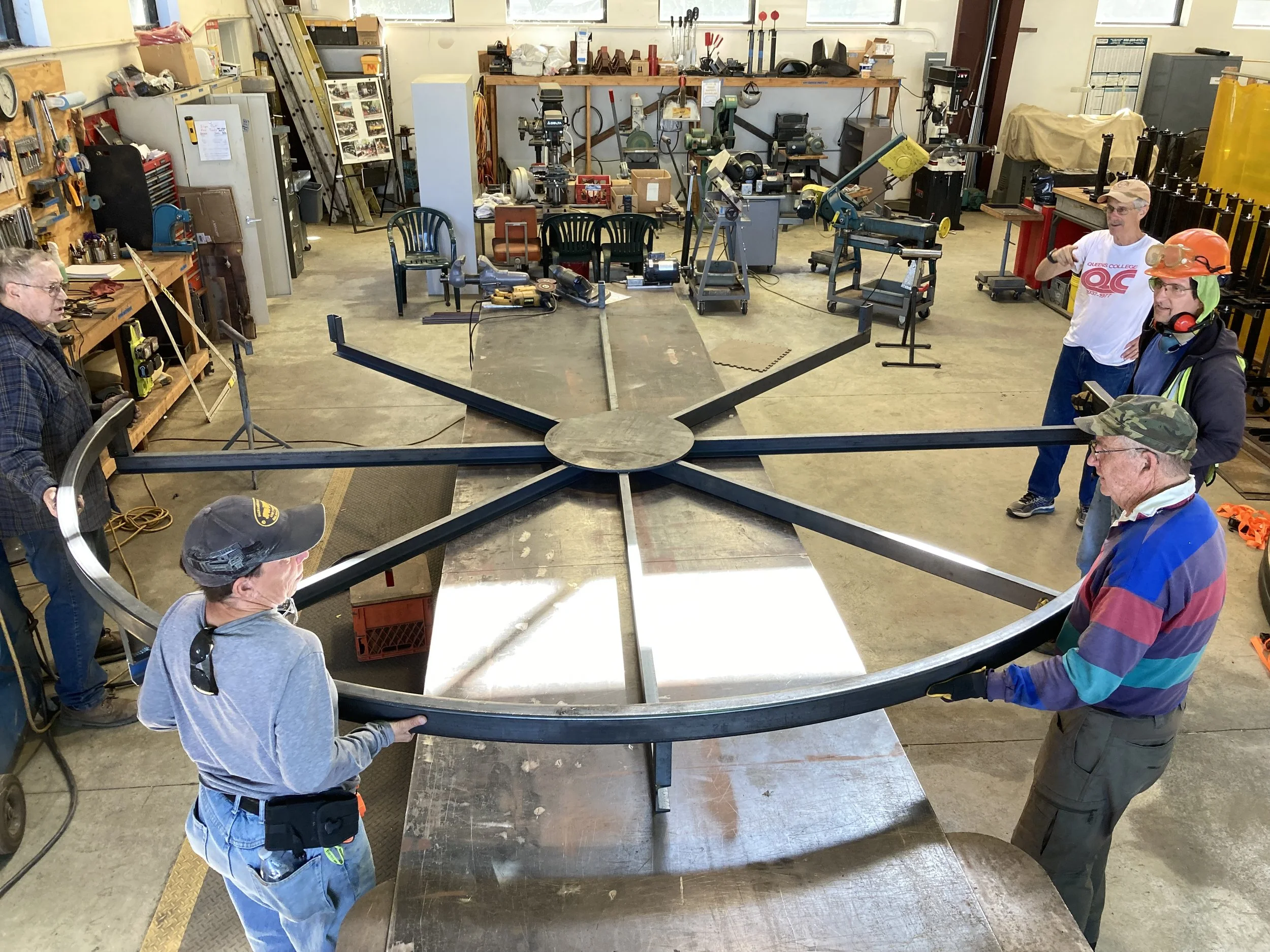Great progress is being made by Tom, Carl, and Bill on the Rabbit Flat turntable’s base.