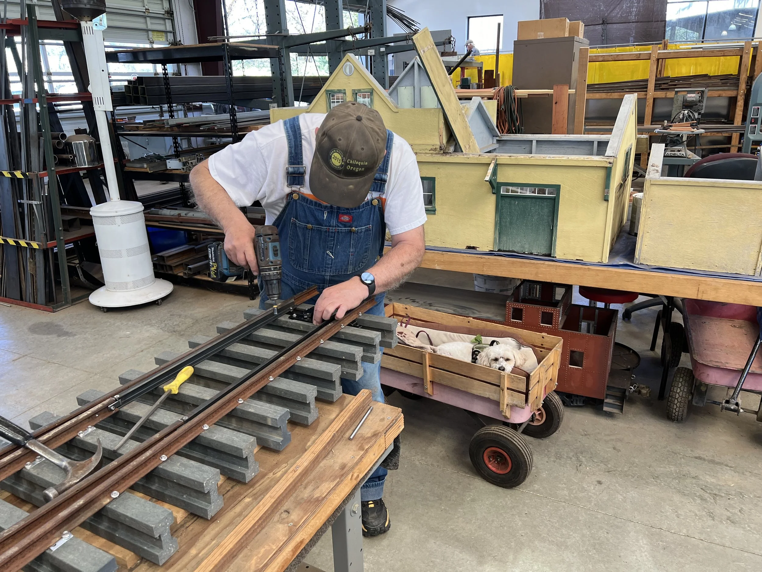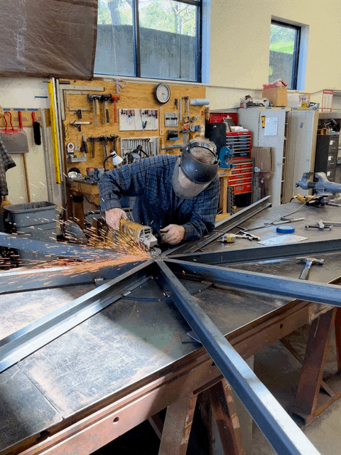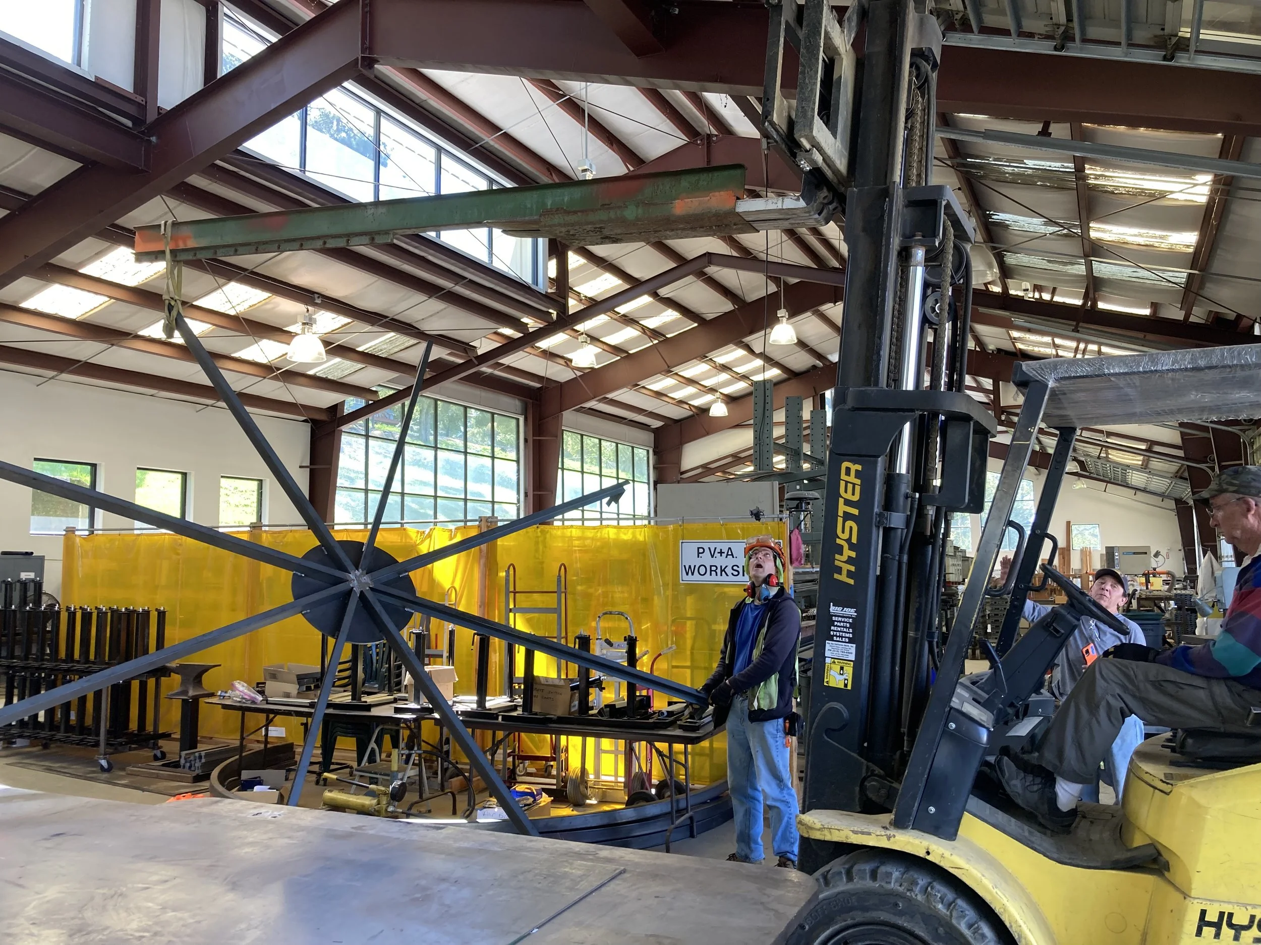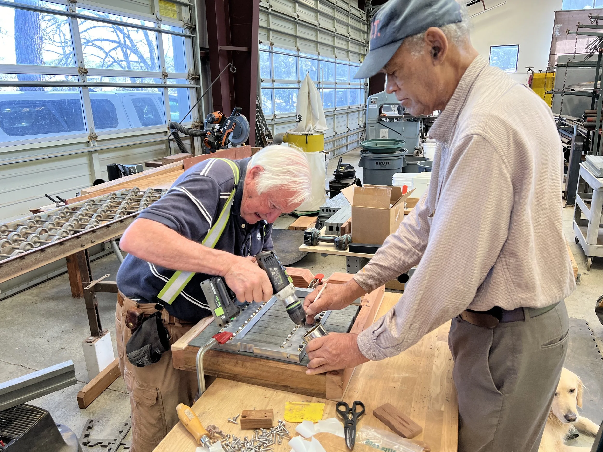 Great progress is being made by Tom, Carl, and Bill on the Rabbit Flat turntable’s base.