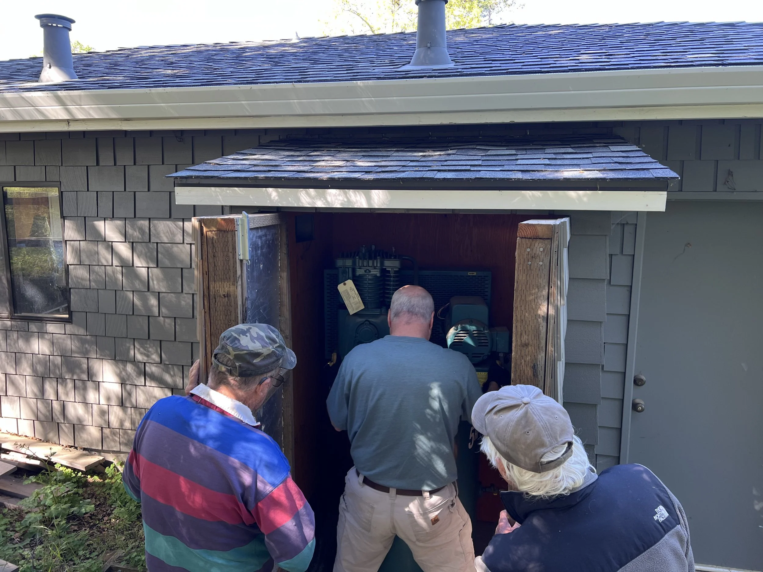 Bruce arrives with a compressor donated by Lila Schmidt - 23 AMPs please