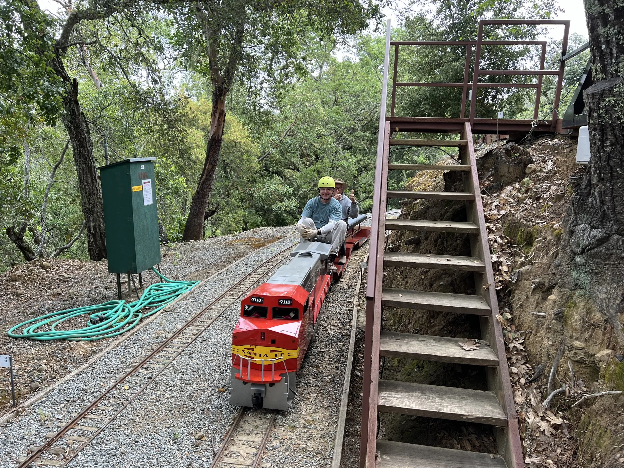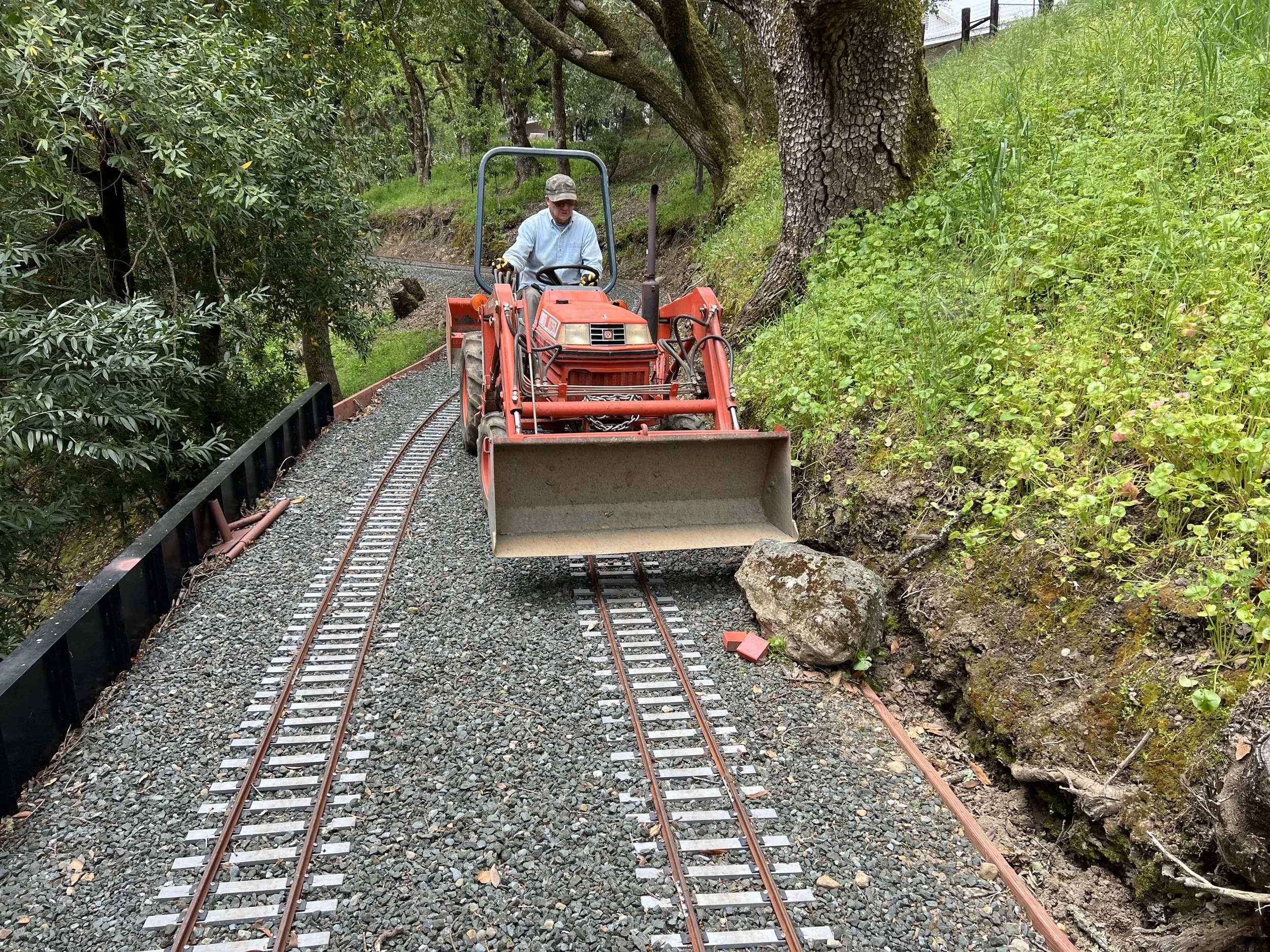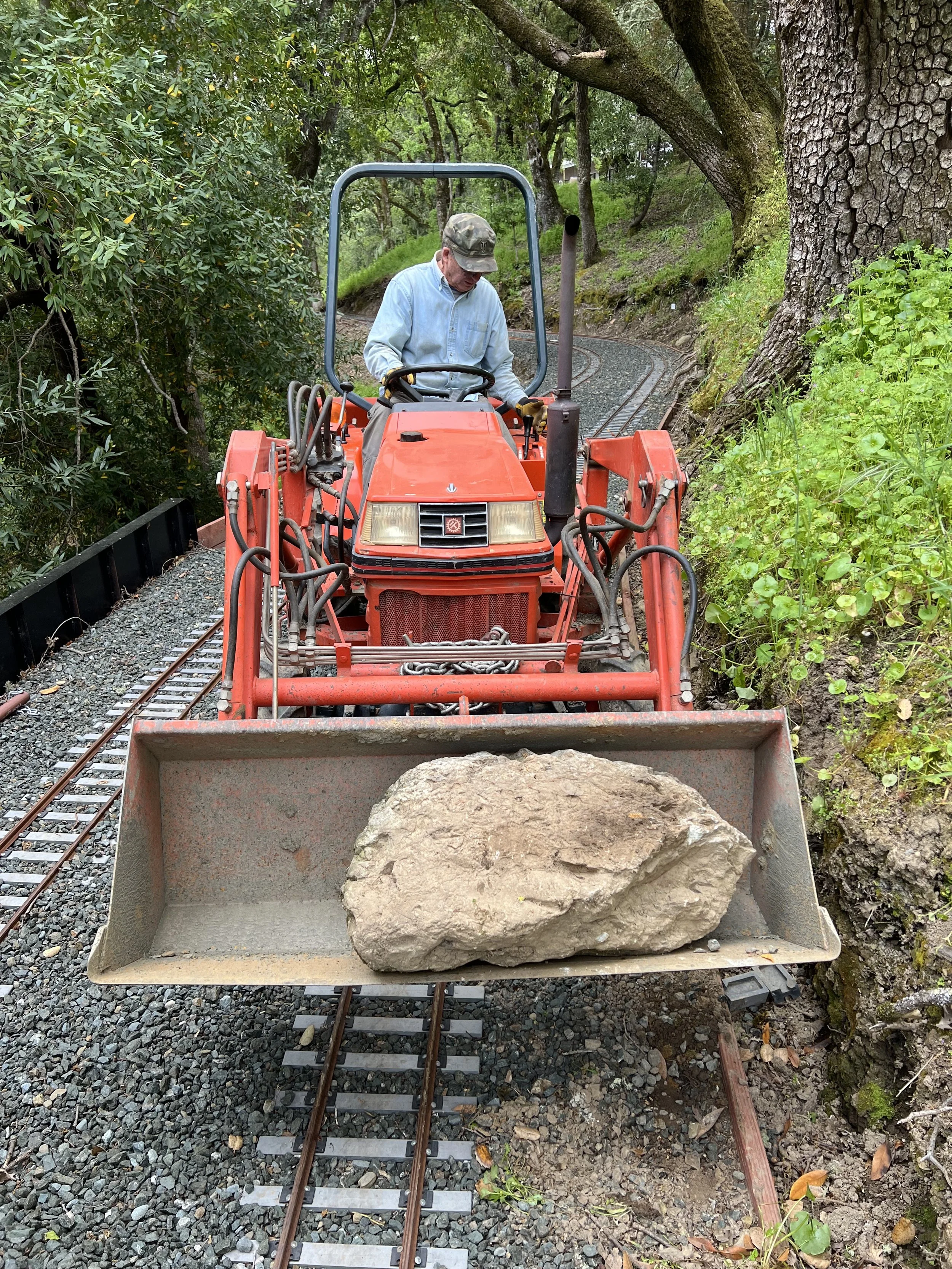 The right-of-way was blown and inspected by Kevin & Bruce. Bill, Randy, & Bob removed a bolder that was sitting close to the track. John & Leo inspected and oiled switches. All this was done to make ready for the April run weekend.