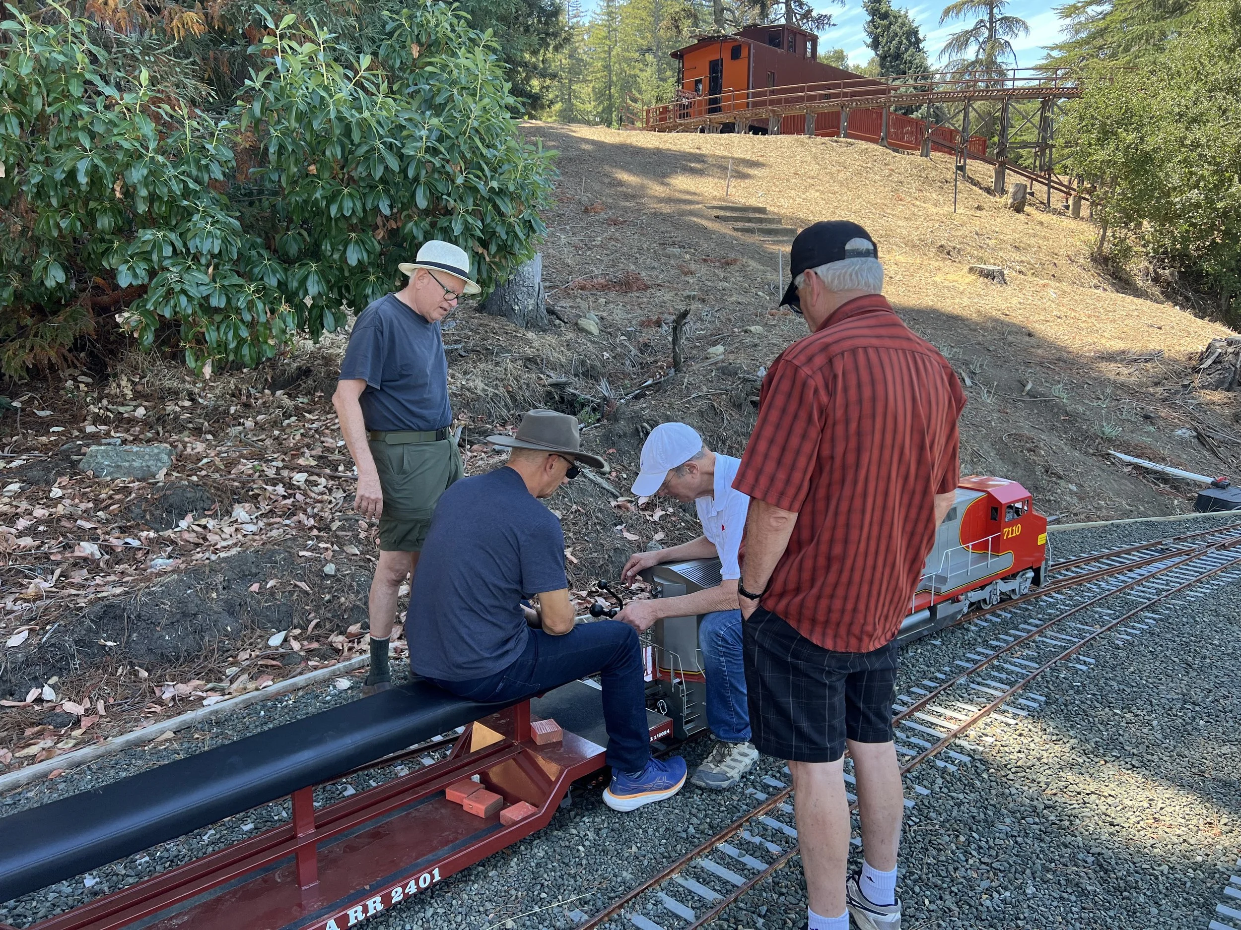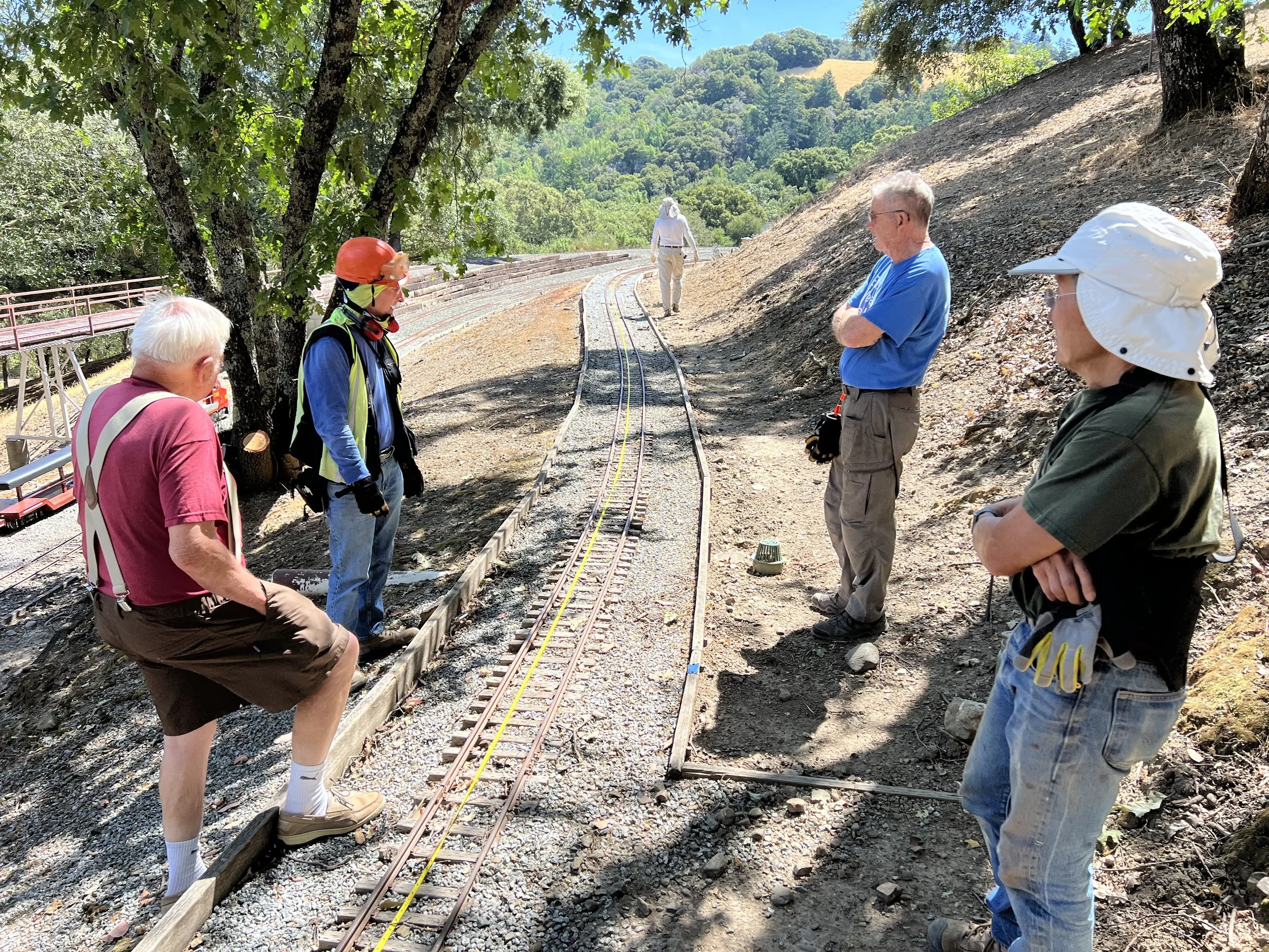 A group of folks gathered at the Alpine Spur to plan the next all club work weekend.