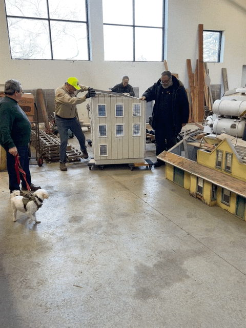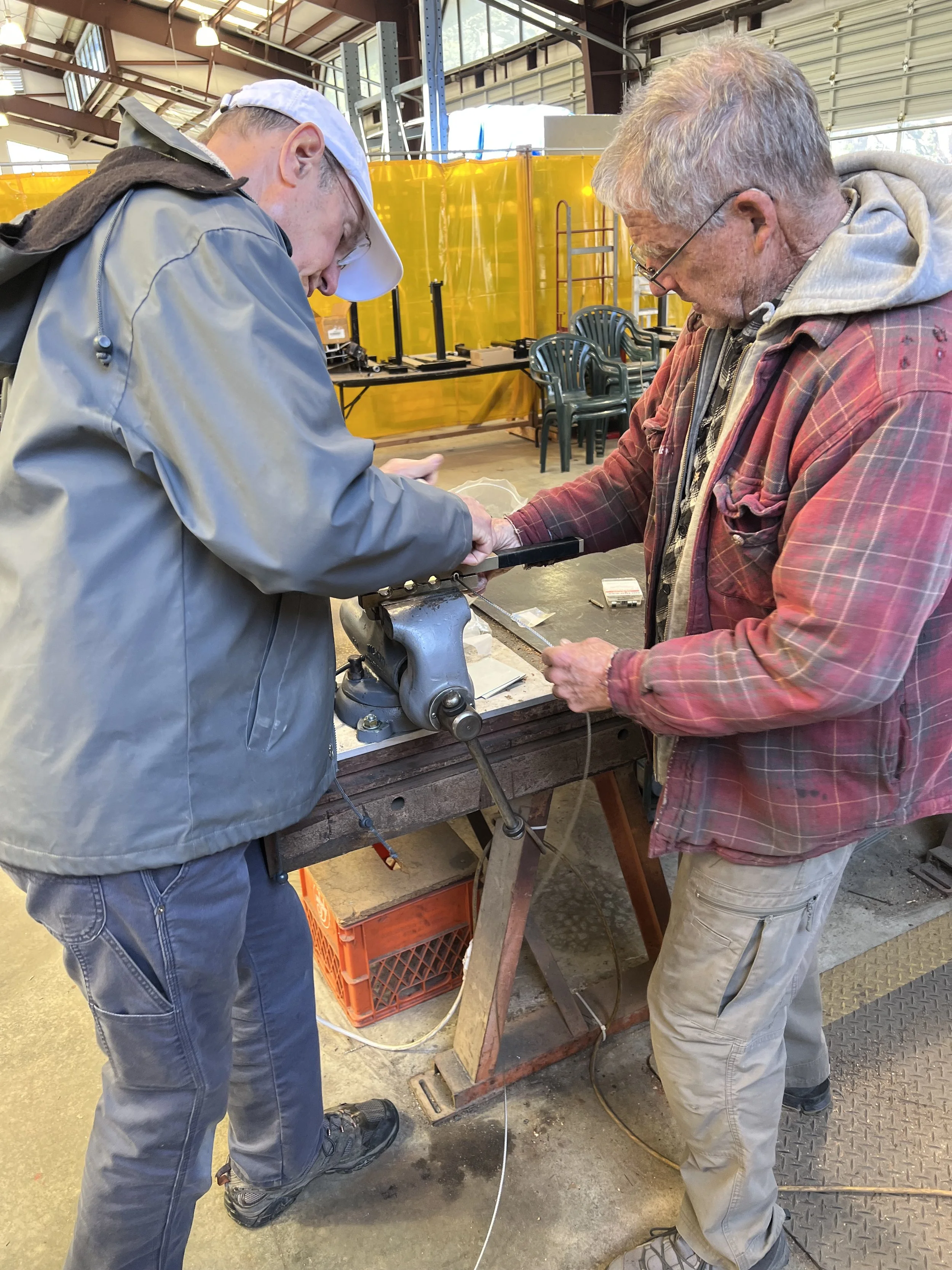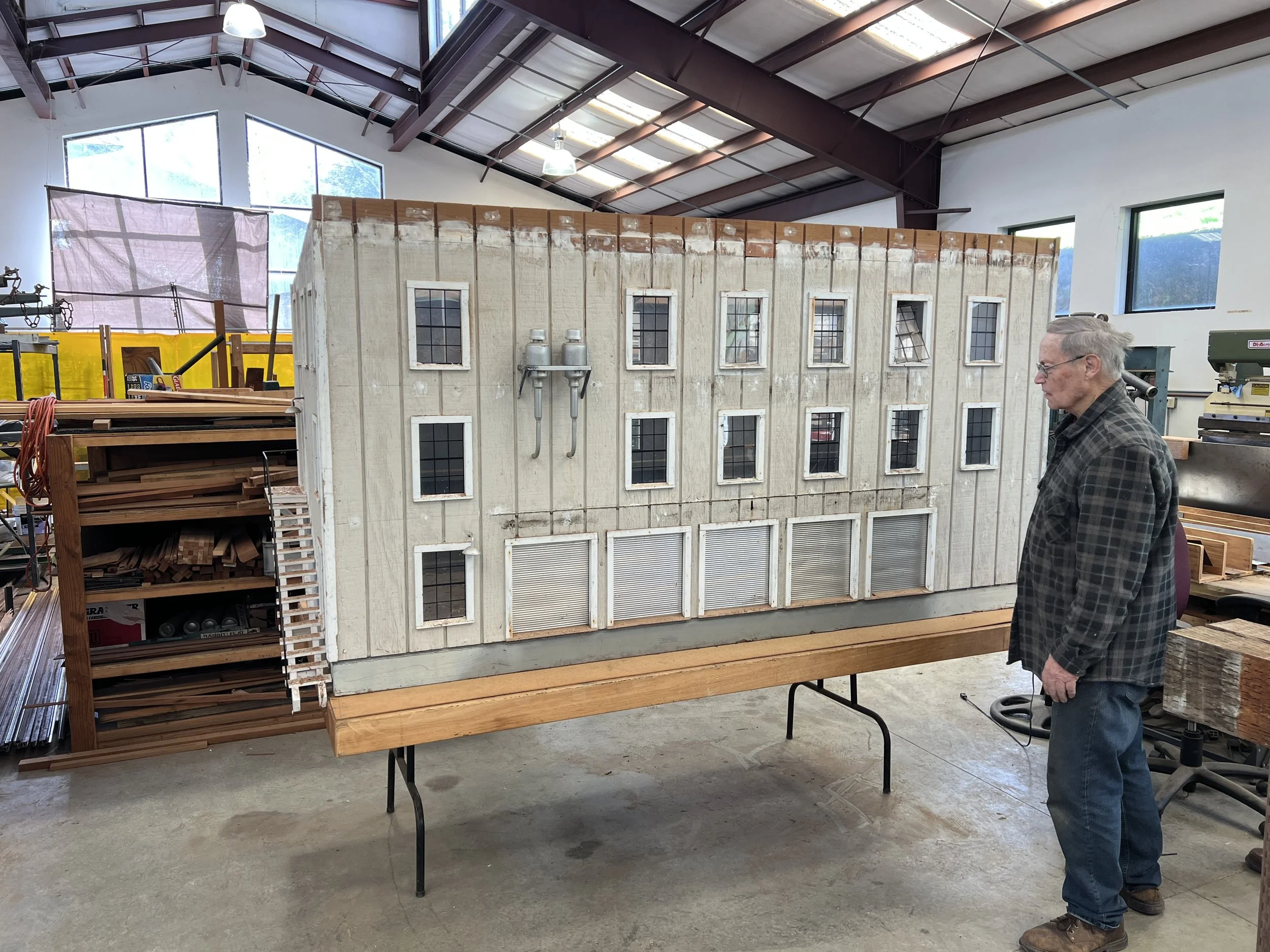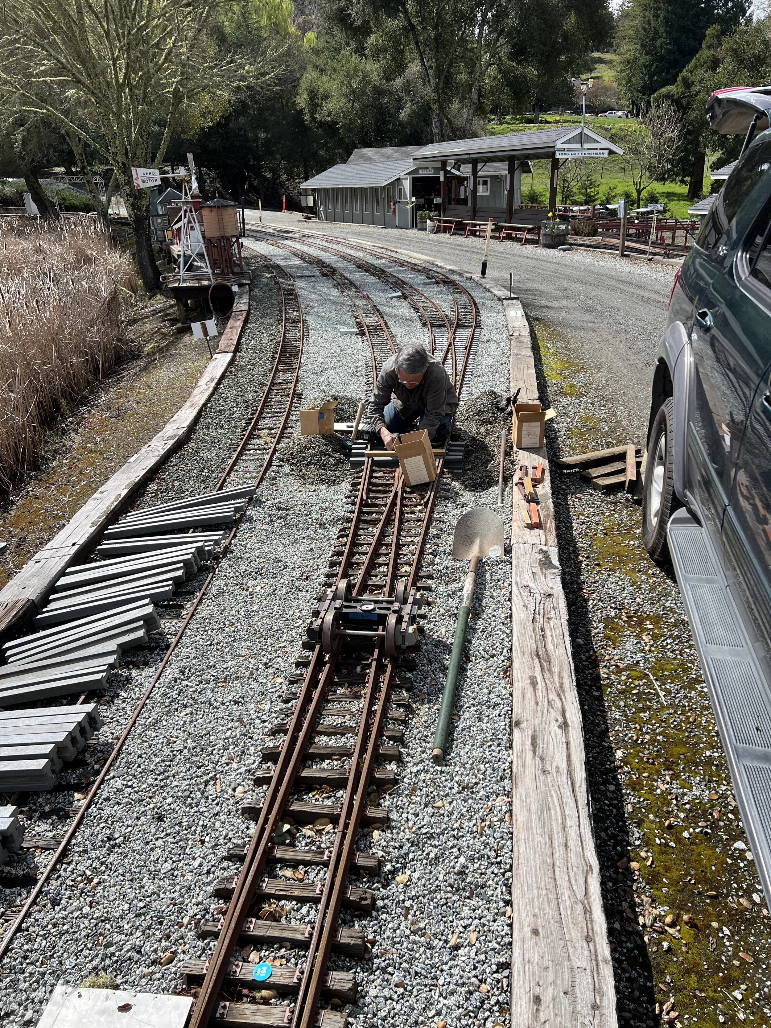 A bit of rain did not stop folks from working along the tracks and in the shop