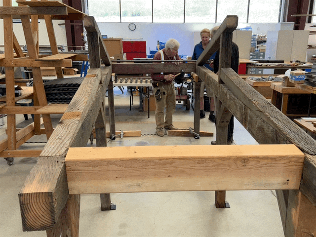 Mike’s team assembled a C16 frame for the roundhouse in the shop.