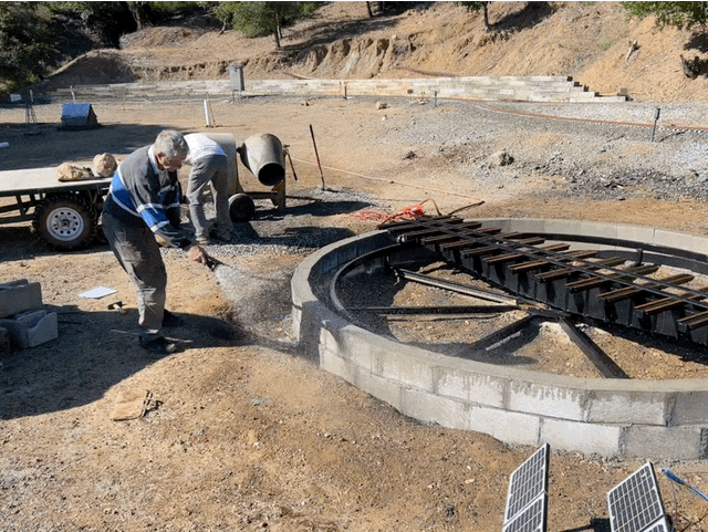 Marty, Bruce, Bill, and Kevin started the 27.5 60# bags of cement before it got warm.