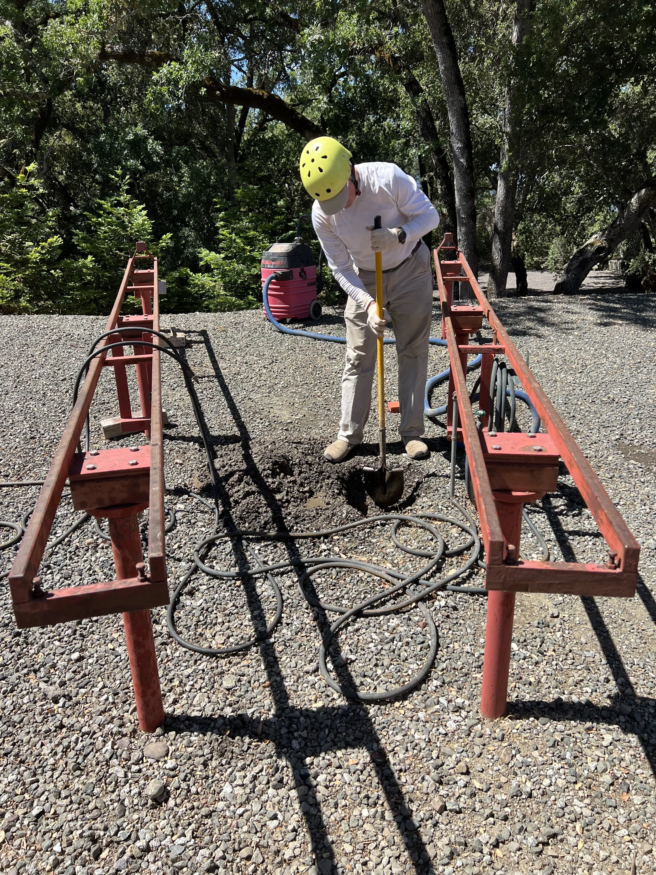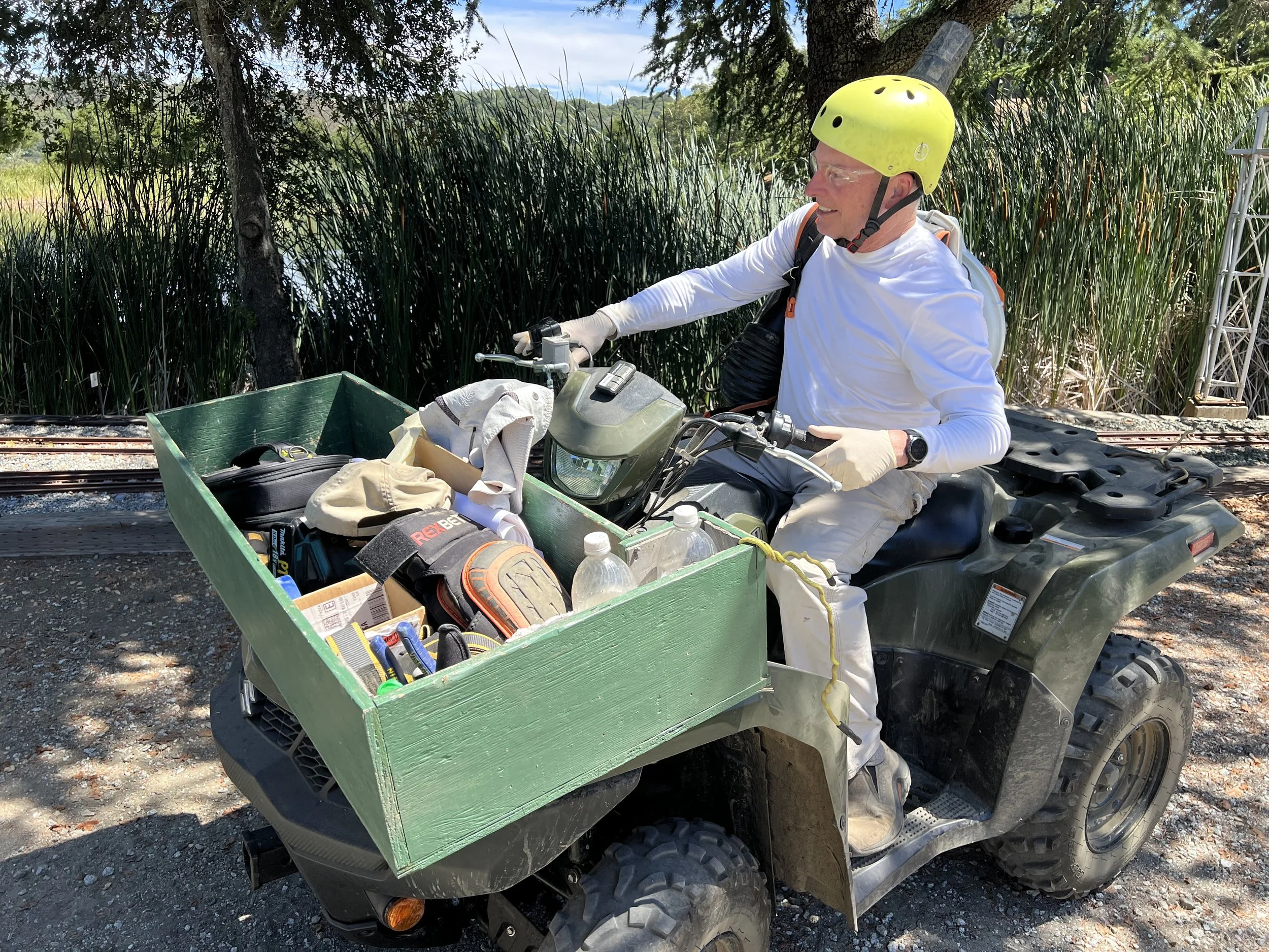 This was our first really warm work day. Folks managed to get most of their outside work done before lunch. Tough guys (Bruce & Kevin) blew the right of way in the heat of the day.