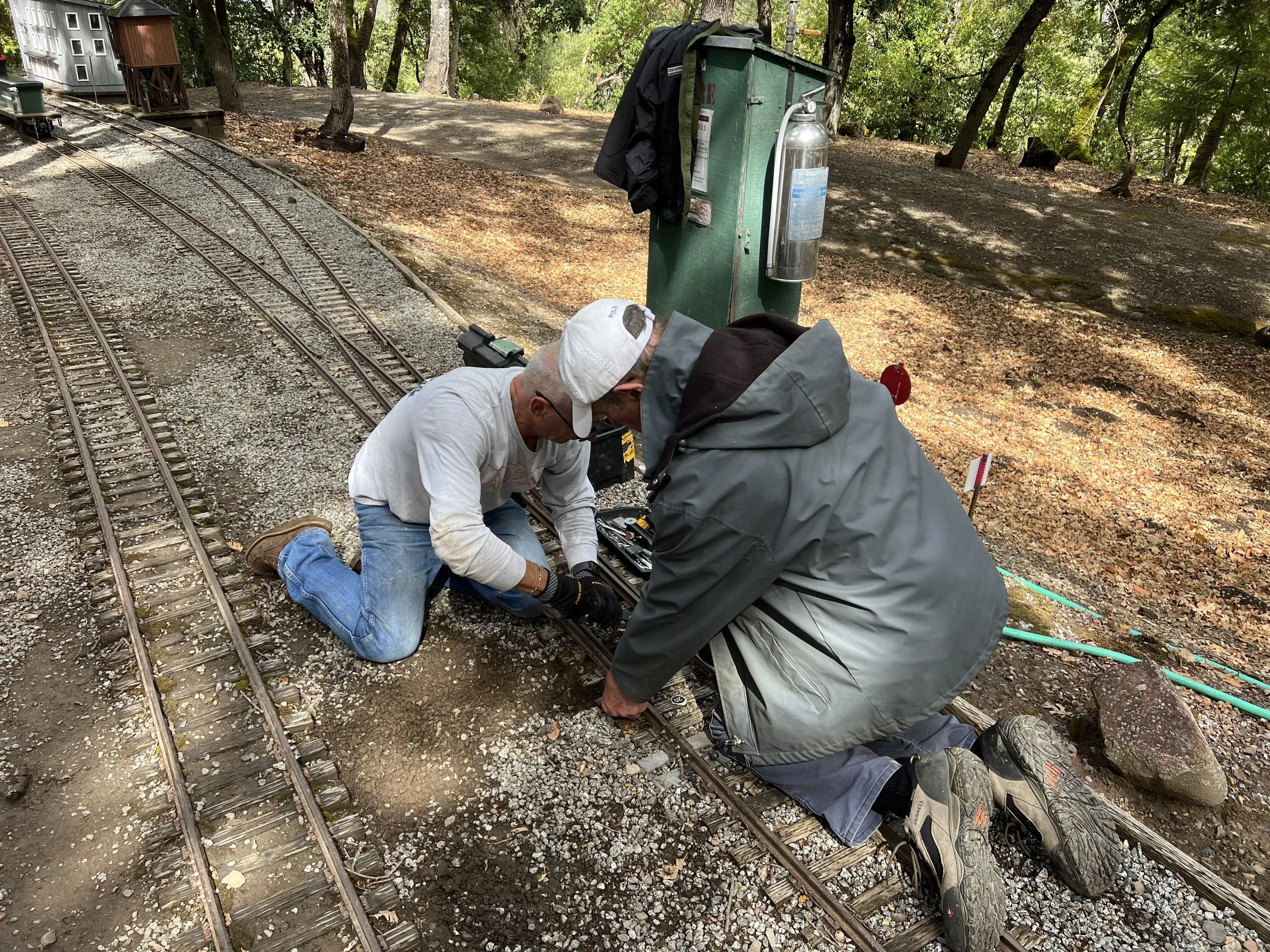 A full court press on track maintenance took place today in the wake of the big three club meet. Switches and track received equal attention by two different teams.